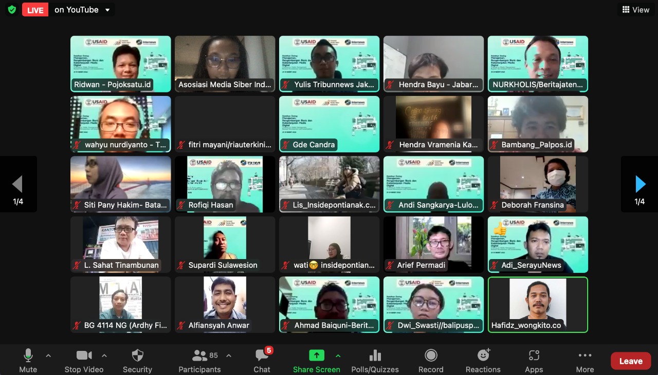 Jakarta, Asosiasi Media Siber Indonesia (AMSI) kembali menggelar Pelatihan Penguatan Manajemen, Bisnis, dan Keberlanjutan Media Digital (Training Media Management, Business Development and Sustainability). Sejumlah 100 orang lebih mengikuti training yang digelar sejak 21-30 Maret secara daring. Mereka merupakan pimpinan media dari unsur redaksi, manajemen atau teknologi dari 51 media online, dari berbagai daerah di Indonesia.
