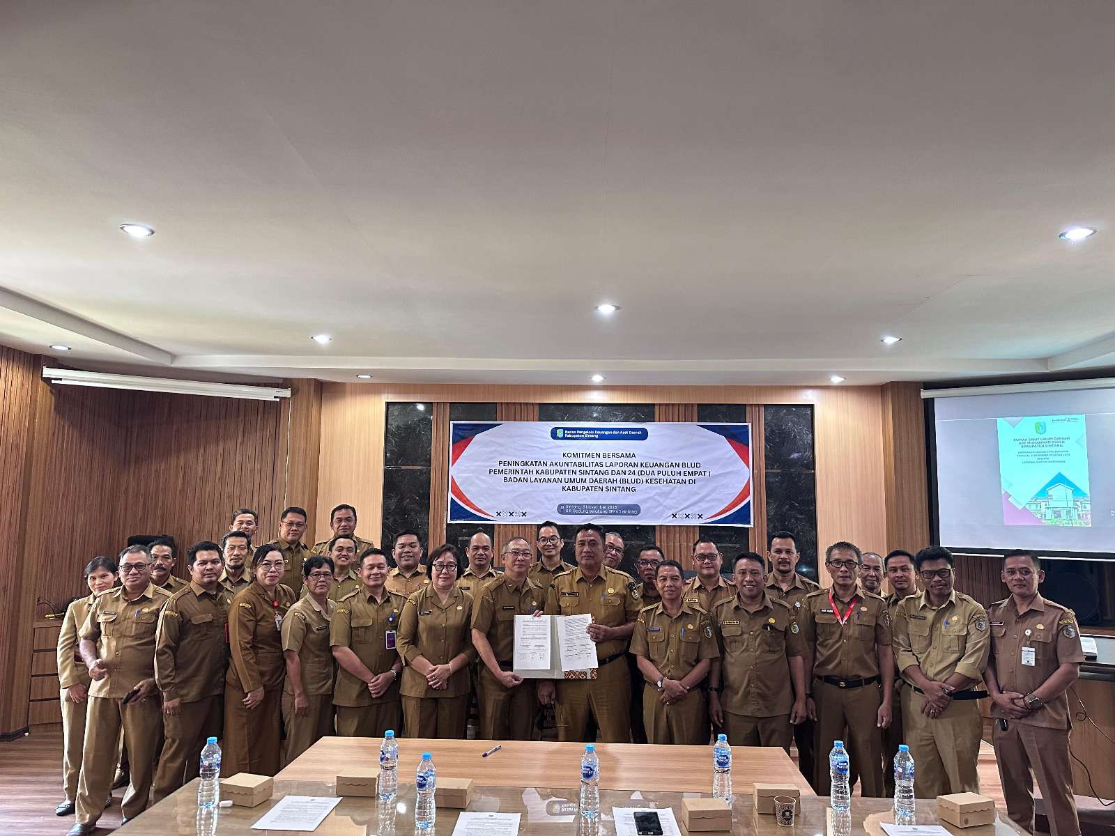 Penandatanganan Komitmen Bersama Meningkatkan Akuntabilitas Laporan Keuangan BLUD tersebut dilakukan antara antara Pemerintah Daerah Kabupaten Sintang dengan 24 BLUD Kesehatan di Pemerintah Kabupaten Sintang yang terdiri dari 3 Rumah Sakit, 20 Pukesmas dan 1 Labkesda.