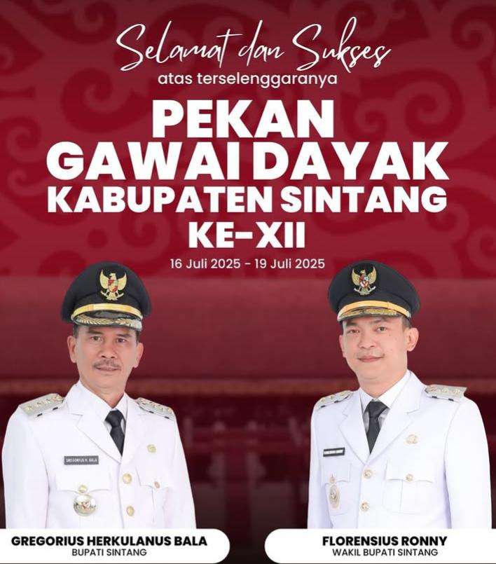 “Selamat Pekan Gawai Dayak ke-XII kabupaten sintang yang akan dilaksanakan pada tanggal 16-19 juli 2025, di rumah betang tampun juah jerora satu sintang. Bangkit bersama melestarikan adat istiadat untuk dayak hebat indonesia kuat. Menggali budaya daerah mempertebal budaya nasional. Selamat menjalankan gawai, semoga sukses sampai selesai ” kepada seluruh masyarakat Dayak di Kabupaten Sintang.