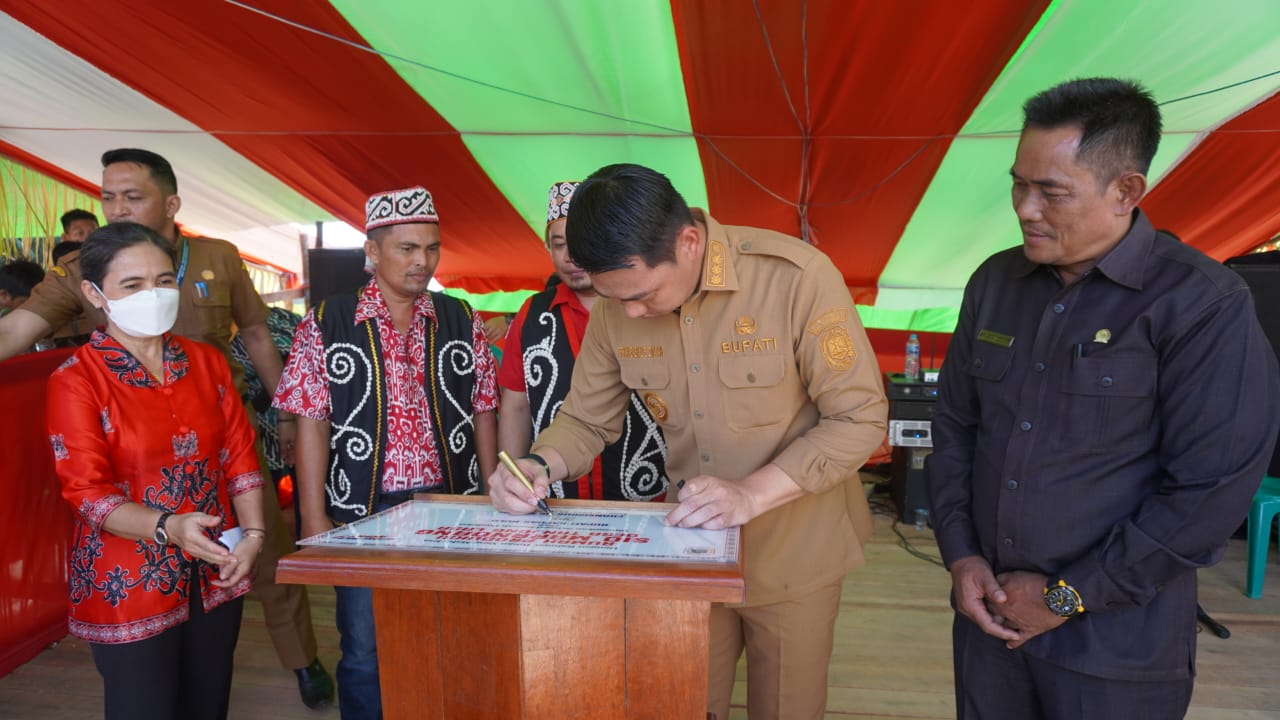 Kapuas Hulu – Bupati Kapuas Hulu Fransiskus Diaan resmikan Rumah Produksi Sio Marandang di Desa Tanjung Lasa Kecamatan Putussibau Utara. Senin (15/8/22) siang