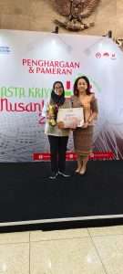 Maspuati menerima penghargaan juara ketiga Asta Kriya Nusantara dari Kementerian Perindustrian di Jakarta, Selasa (20/8/2024). Dia didampingi Ketua Dekranasda Kabupaten Kapuas Hulu, Ny. Angeline Fremalco F.Diaan bersama pengurus Dekranasda Kabupaten Kapuas Hulu lainnya.