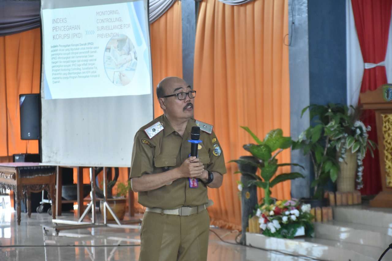 Dihadapan Inspektur Sintang Ardatin, Staf Ahli Bupati Sintang, Asisten, Kepala Organisasi Perangkat Daerah dan Camat di Lingkungan Pemerintah Kabupaten Sintang. Kartiyus Sekda Sintang mengajak ASN Pemkab Sintang untuk meningkatkan nilai Indeks Pencegahan Korupsi Daerah yang diberikan oleh KPK.