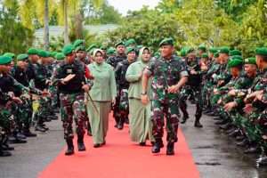 Sintang, Danrem 121/Abw Brigjen TNI Luqman Arief, M.I.P., memberikan pengarahan kepada seluruh prajurit Yonif 642/Kps dan Ibu-ibu Persit Kartika Chandra Kirana menjelang atau sebelum berangkat penugasan Pengamanan Perbatasan RI-PNG wilayah Papua Barat, Sabtu (15/06/2024).
