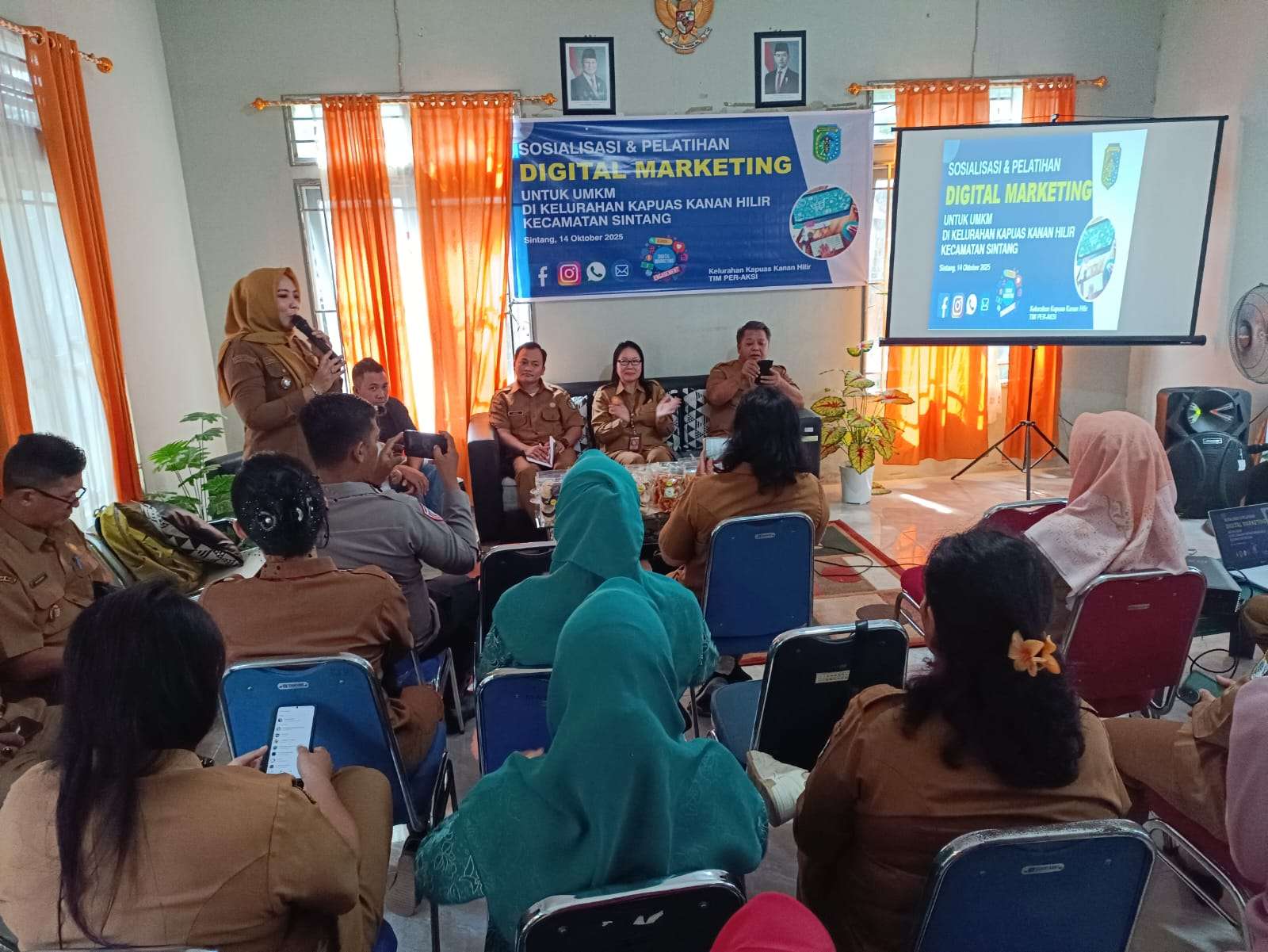 SINTANG – Selasa 14 Oktober 2025, Para pelaku Usaha Mikro, Kecil dan Menengah (UMKM) yang ada di Kelurahan Kapuas Kanan Hilir Kecamatan Sintang menerima pelatihan Digital Marketing yang diselenggarakan oleh Lurah Kapuas Kanan Hilir Kecamatan Sintang. Kegiatan ini bertempat di Aula Kelurahan Kapuas Kanan Hilir.