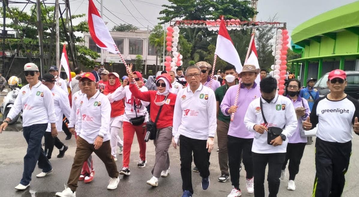 PONTIANAK Gubernur Kalbar, H Sutarmidji, SH, M.Hum melepas dan ikut serta langsung kegiatan Jalan Sehat Kebangsaan yang dilaksanakan Perkumpulan Merah Putih (PMP) Kalimantan Barat yang megikutsertakan 24 etnis yang ada di Kalbar.