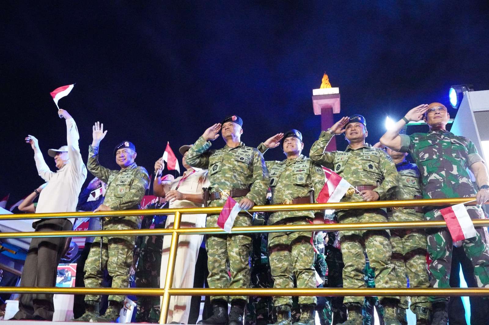(Puspen TNI). Dalam rangkaian peringatan Hari Ulang Tahun (HUT) ke-80 Kemerdekaan Republik Indonesia, Panglima TNI Jenderal TNI Agus Subiyanto menghadiri acara Pesta Rakyat & Karnaval Bersatu yang digelar di kawasan Monumen Nasional (Monas), Jakarta Pusat, Minggu (17/8/2025).