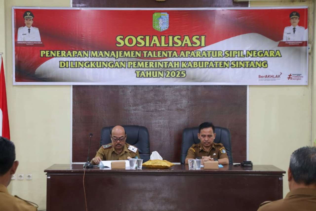 SINTANG – Senin 27 Oktober 2025, Pemerintah Kabupaten Sintang melalui Badan Kepegawaian dan Pengembangan Sumber Daya Manusia (BKPSDM) Kabupaten Sintang menggelar sosialisasi penerapan manajemen talenta Aparatur Sipil Negara. Kegiatan ini bertempat di Aula BKPSDM.