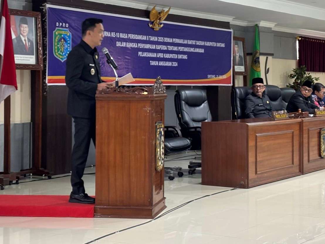Sintang, 21 Juli 2025 – Wakil Bupati Sintang, Bapak Florensius Ronny, membacakan pidato laporan Bupati Sintang, Bapak Gregorius Herkulanus Bala, dalam Rapat Paripurna ke-10 Masa Persidangan II Tahun 2025. Rapat ini diselenggarakan di Kantor DPRD Sintang dengan agenda utama pembahasan Rancangan Peraturan Daerah (Raperda) tentang Pertanggungjawaban Pelaksanaan Anggaran Pendapatan dan Belanja Daerah (APBD) Tahun Anggaran 2024.