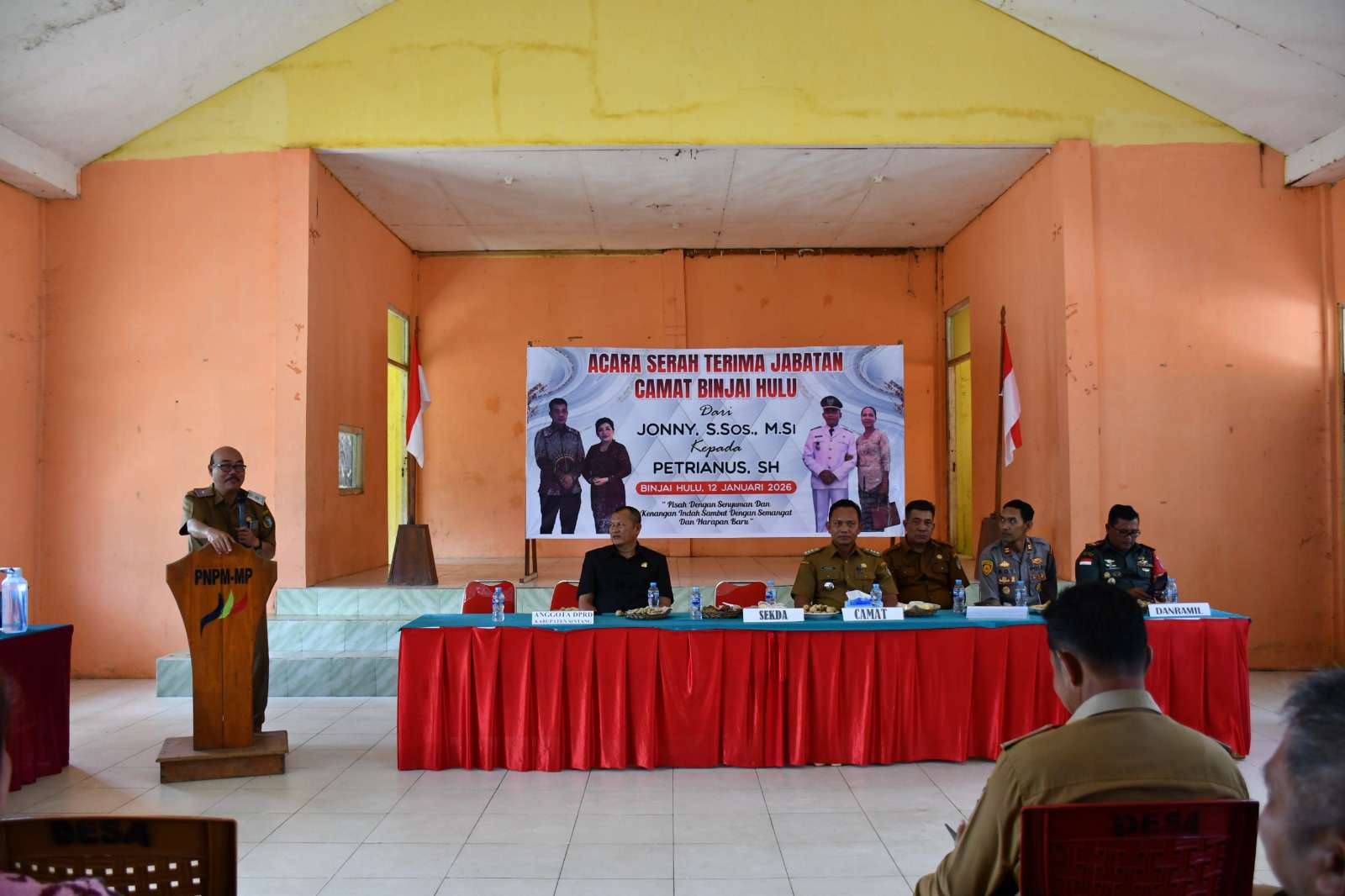 SINTANG – Senin 12 Januari 2026, Sekretaris Daerah Kabupaten Sintang Kartiyus menghadiri serah terima jabatan Camat Binjai Hulu. Kegiatan ini bertempat di Gedung Serbaguna Kecamatan Binjai Hulu.