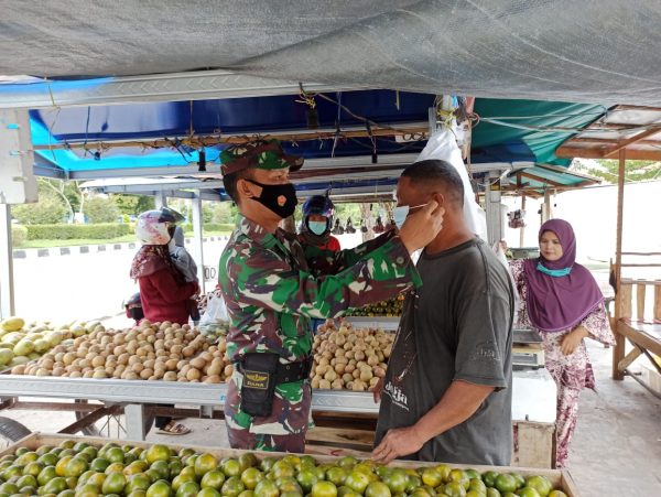 Kali ini sertu Yulian Segah singgah disekitar pasar buah yang berada di Jalan Diponegoro Palangkaraya, Kelurahan Pahandut Kecamatan Pahandut Kota Plangkaraya. Melihat beberapa orang pedagang buah yang belum menggunakan masker, hati Sertu Yulian Segah tergerak untuk mengingatkan dengan cara yang ramah dan sambal bersenda gurau, sambil turut membagikan masker dan membantu mengenakan masker tersebut kepada mereka. Hal ini dilakukan selain untuk mamastikan setiap orang mengguankan alat pelindung diri yang benar, juga untuk meningkatkan kemanunggalan TNI dengan rakyat.