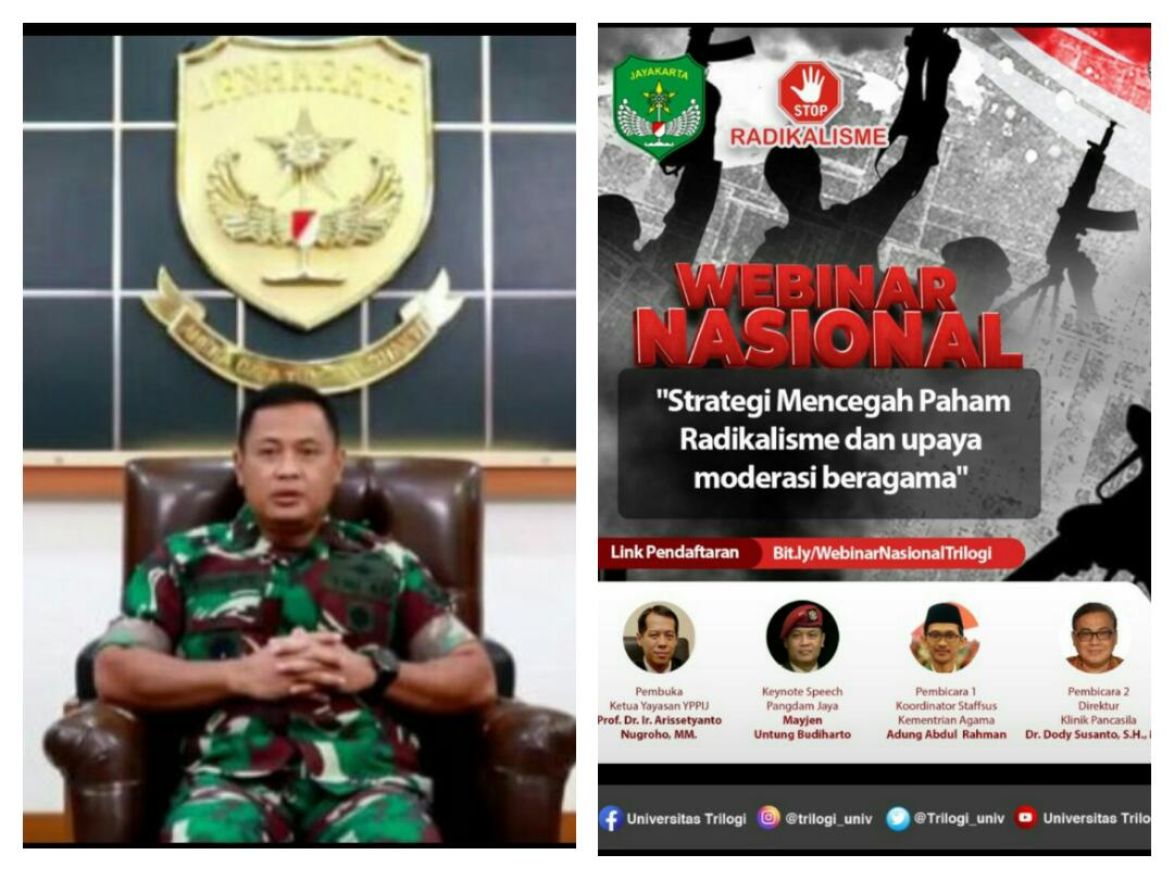 JAKARTA — Universitas Trilogi Jakarta, bekerjasama dengan Kodam menggelar Webinar Nasional bertemakan “Strategi Mencegah Paham Radikalisme dan Upaya Moderasi Beragama”