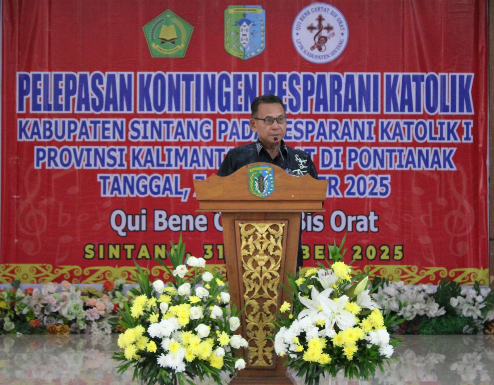 SINTANG – Kamis 30 Oktober 2025, Kontingen Pesparani Kabupaten Sintang dilepas oleh Bupati Sintang Gregorius Herkulanus Bala untuk mengikuti Pesparani I Tingkat Provinsi Kalimantan Barat. Kegiatan pelepasan ini bertempat di Pendopo Bupati Sintang.