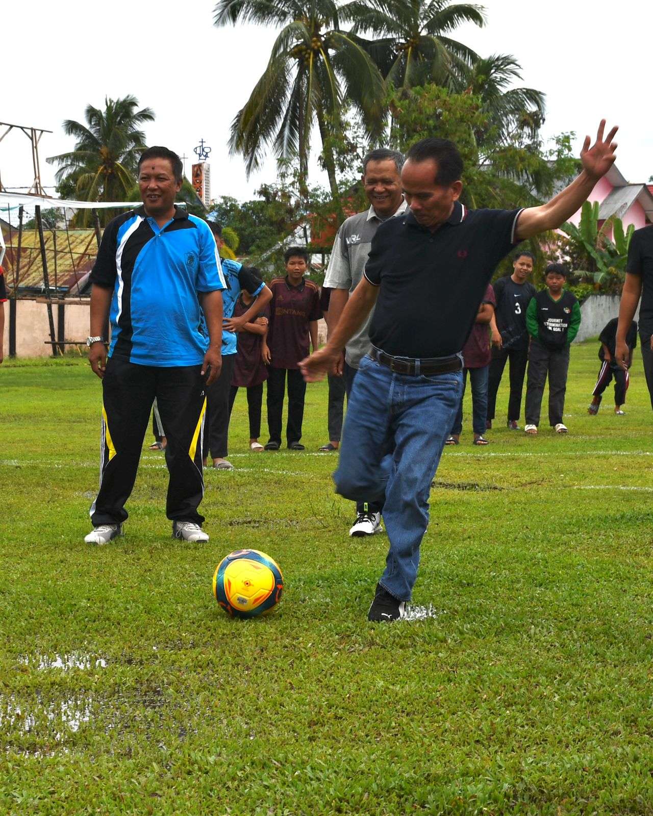 “cuma saya merasa berhutang, saya tidak pernah mampu mencetak gol. Itulah kenapa saya harus datang ke sini, betul-betul mengapresiasi adik-adik semua. Pesan saya, bermainlah yang sportif, tunjukkan teknik, bukan licik, itu yang saya harapkan dengan anak-anak” pesan Bupati Sintang.