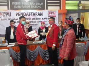 Usai melakukan deklarasi, Pasangan Bacalon Bupati dan Wakil Bupati, didampingi pengurus partai politik pengusung secara berombongan bergerak mendatangi kantor KPUD Sintang untuk melakukan pendaftaran peserta Bacalon Pilkada 2020.