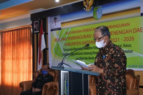 Wakil Bupati Sintang Sudiyanto, SH saat membuka pelaksanaan Musyawarah Perencanaan Pembangunan Rancangan Rencana Pembangunan Jangka Menengah Daerah (RPJMD) Kabupaten Sintang Tahun 2021-2026 menyampaikan Pemerintah Kabupaten Sintang menyampaikan terima kasih dan penghargaan atas kehadiran saudara-saudara dalam musyawarah perencanaan pembangunan rencana pembangunan jangka menengah daerah (RPJMD) ini yang dilaksanakan secara zoom meeting ini. mengingat kegiatan ini mengandung bobot kepentingan yang tinggi.