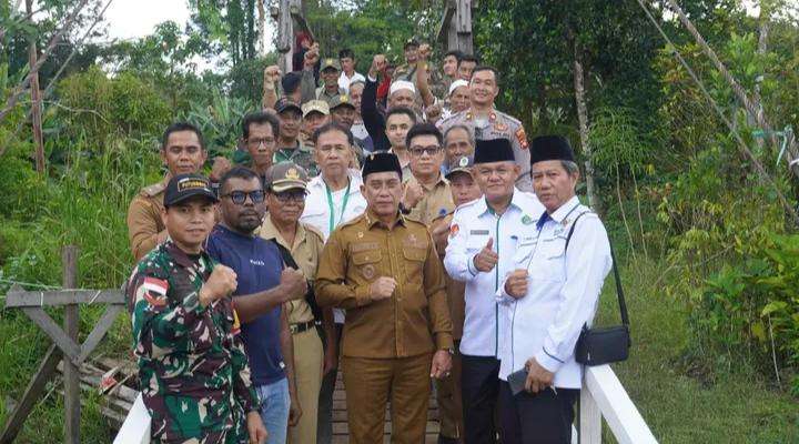 KAPUAS HULU – Selasa 16 Desember 2025, Wakil Bupati Kapuas Hulu Sukardi, S.M., melakukan serangkaian kegiatan penting di Kecamatan Mentebah, antara lain meletakkan batu pertama sebagai tanda dimulainya pembangunan Surau Baiturrahman, menyerahkan sertifikat Pendaftaran Tanah Sistematis Lengkap (PTSL) kepada masyarakat, serta meninjau dan meresmikan jembatan gantung di Dusun Sungai Jambu, Desa Sukamaju.