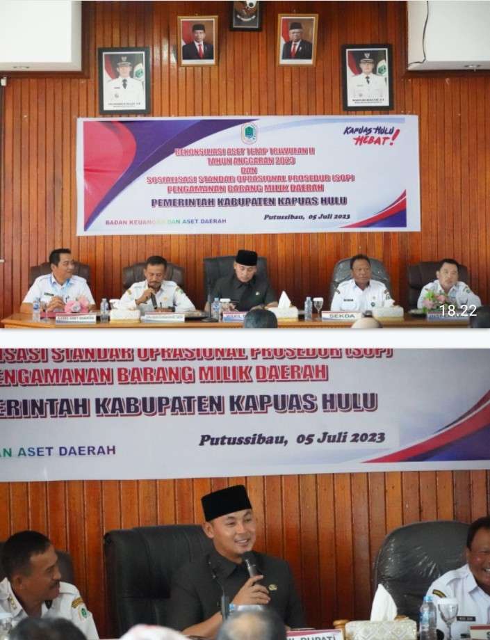 Wakil Bupati Kapuas Hulu Wahyudi Hidayat, S.T menghadiri rekonsiliasi aset tetap triwulan II (dua) tahun anggaran 2023 dan sosialisasi standar oprasional prosedur (sop) pengamanan barang milik daerah Pemerintah Kabupaten Kapuas Hulu hadir pula pada kesempatan tersebut Sekretaris Daerah Kabupaten Kapuas Hulu di Aula BKAD Kapuas Hulu, Putussibau.