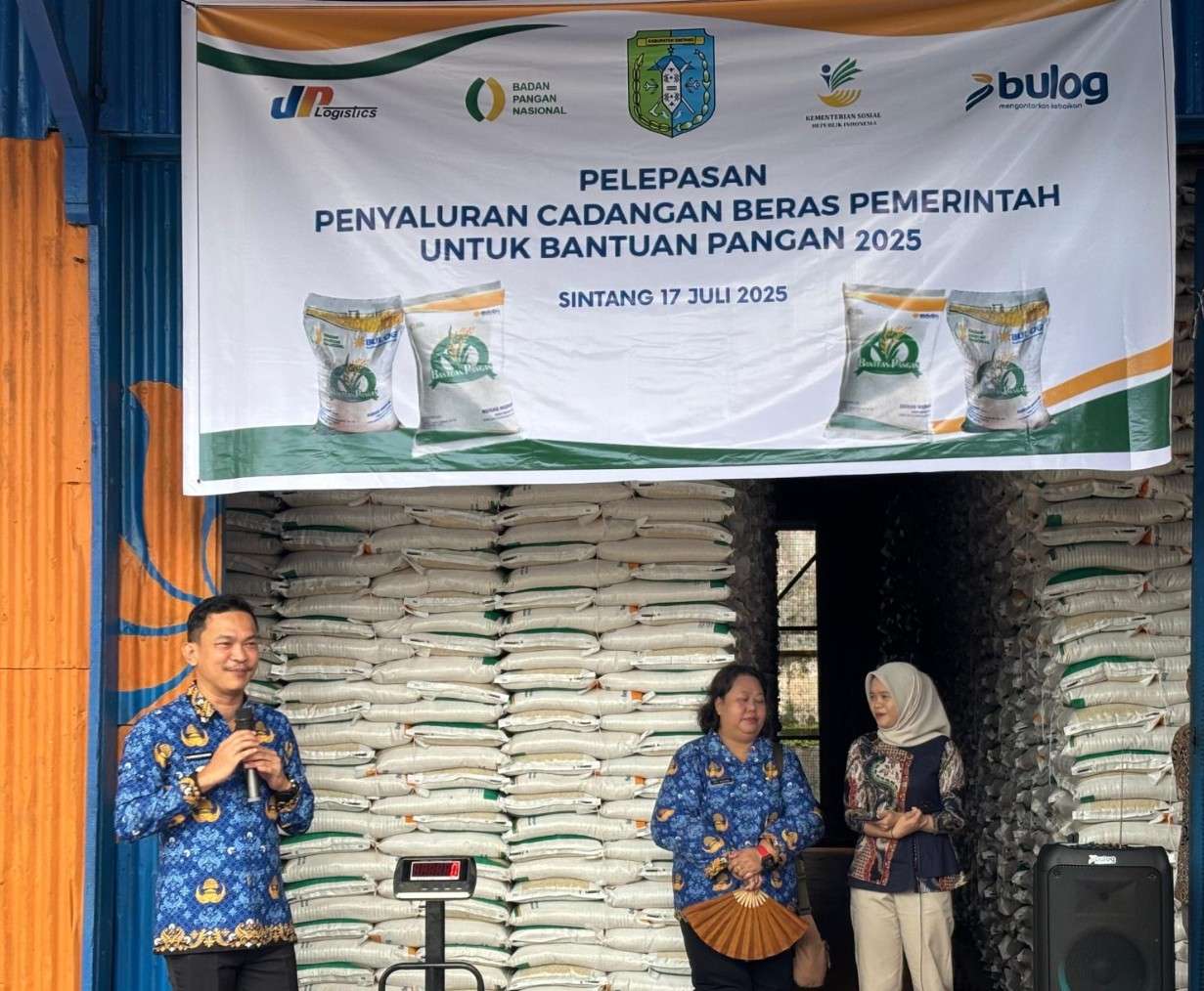 Sintang, 17 Juli 2025 – Wakil Bupati Sintang, Bapak Florensius Ronny, secara resmi membuka kegiatan peluncuran perdana penyaluran Cadangan Beras Pemerintah (CBP) untuk bantuan pangan tahun 2025. Dalam kesempatan ini, beliau menegaskan komitmen Pemerintah Kabupaten Sintang untuk memastikan distribusi beras Bulog sampai ke seluruh desa.